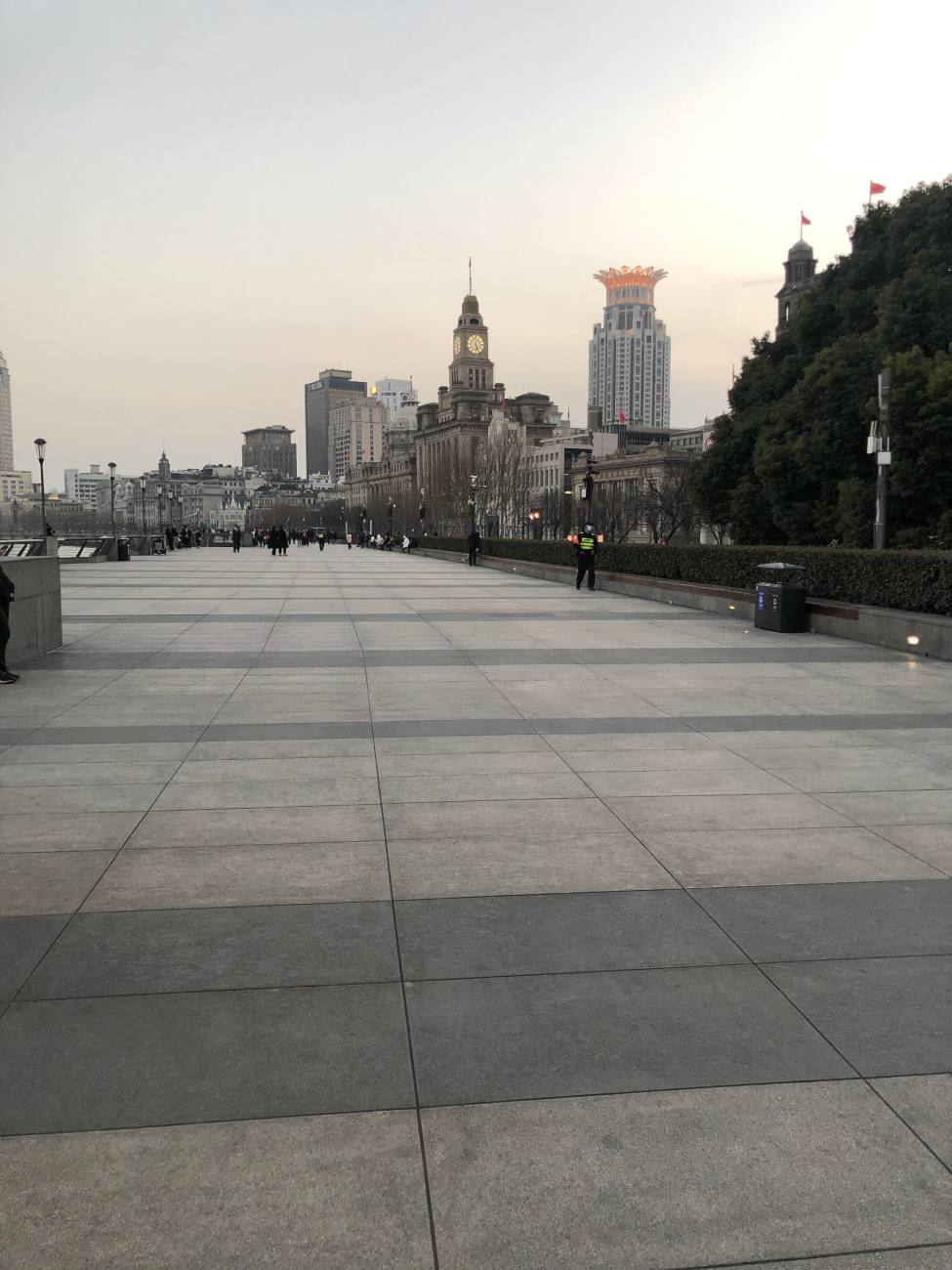 Un an plus tard, je me suis de nouveau retrouvée à déambuler sur le Bund, cette ballade mythique et bien connue de tou.t.e.s, le rendez-vous du dimanche. De là, tu peux admirer, d’un côté de l’avenue, une architecture historique et de l’autre côté, derrière le fleuve, embrasser une vision futuriste. Une oscillation étonnante (ça marche à chaque fois) … Hop, d’un coup de tête tu dégommes les siècles. J’étais seule, avec deux trois badauds (d’habitude, on ajoute aisément deux zéros par mètre carré aux dits badauds).